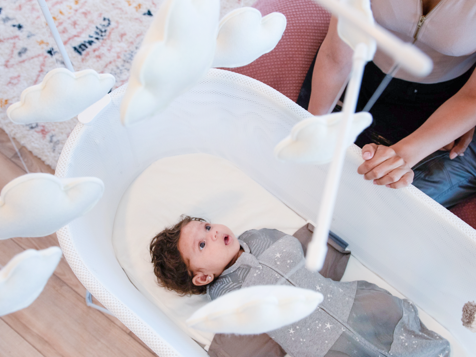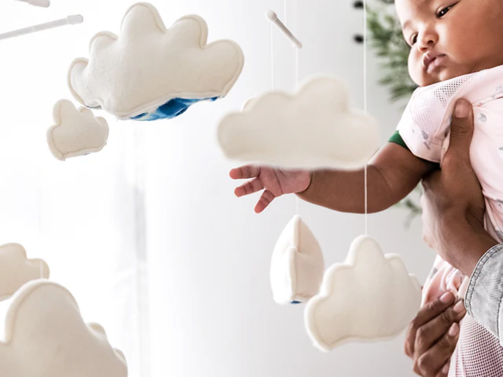 Want your little one to sleep on cloud nine? They will SNOOze even more sweetly with our Sky Mobile’s playful clouds dancing above them. And when they wake, your baby will love watching the beautiful sky pattern printed on the underside of each woolen cloud. This special design was created to engage their attention and interest by celebrated paediatrician, Dr. Harvey Karp!